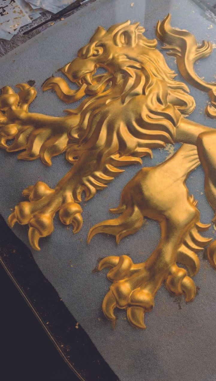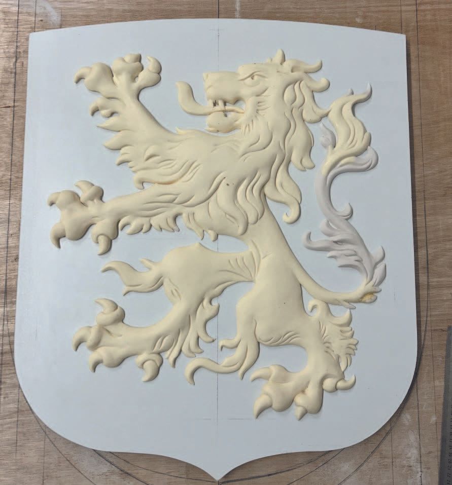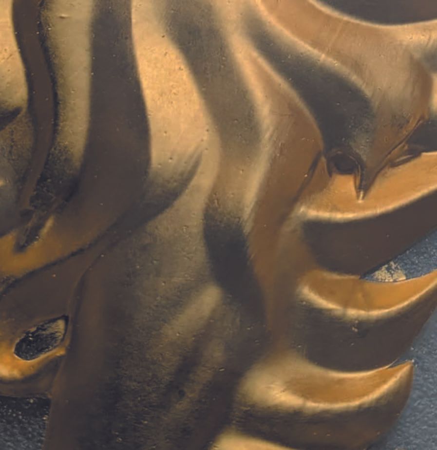 An artistic exploration of contemporary sporting emblems through sculptural modelling and traditional gilding.