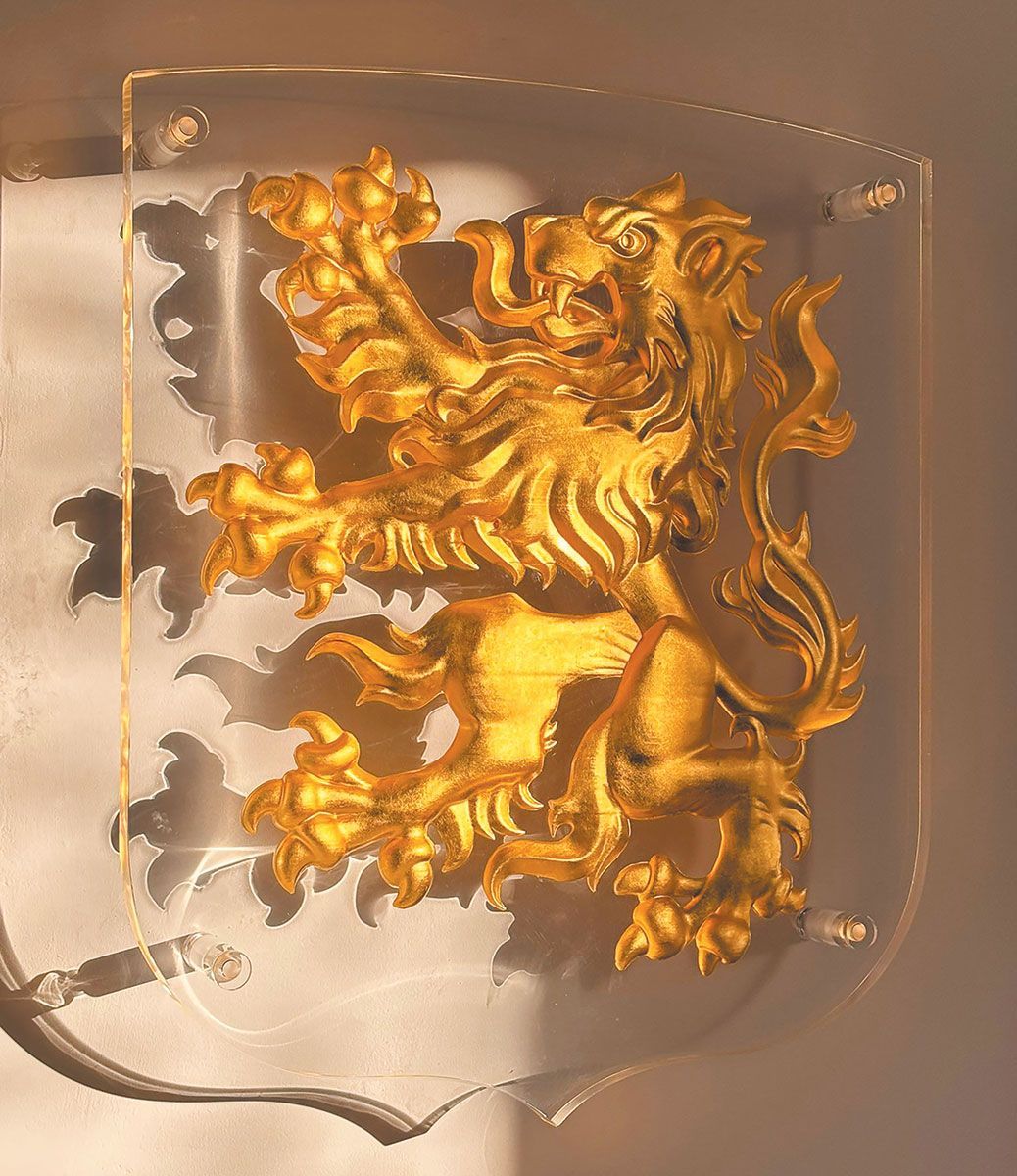 Insignia studies the form of modern sporting crests through sculptural modelling, clear substrate casting and traditional gilding techniques.