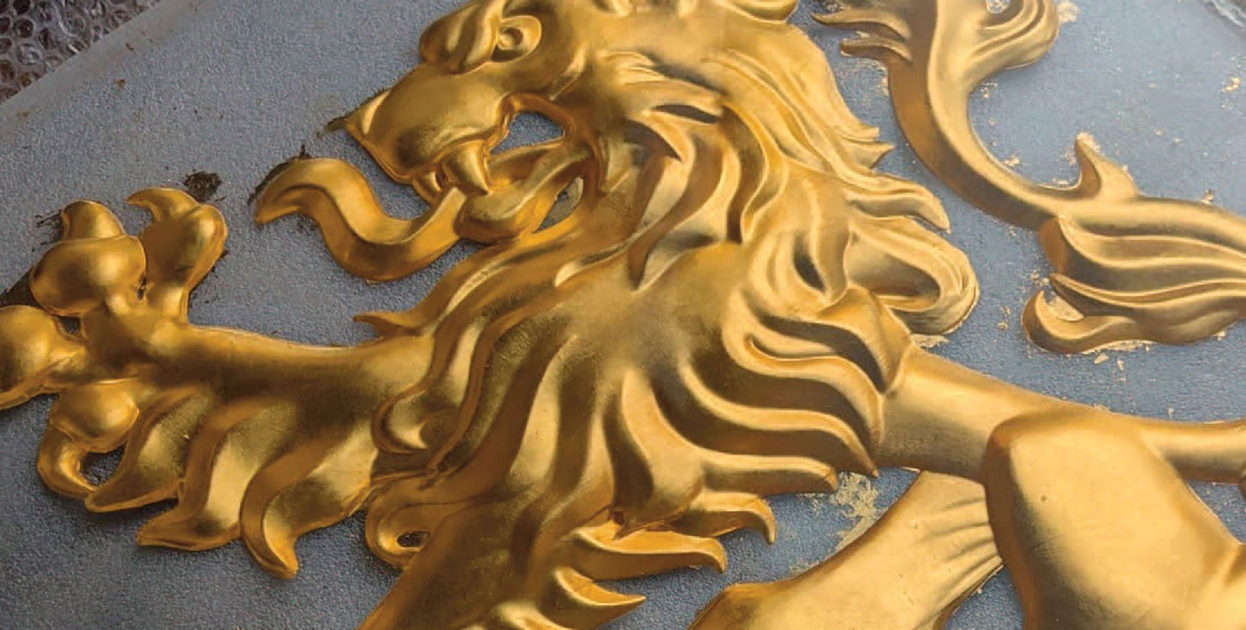 An artistic exploration of contemporary sporting emblems through sculptural modelling and traditional gilding.